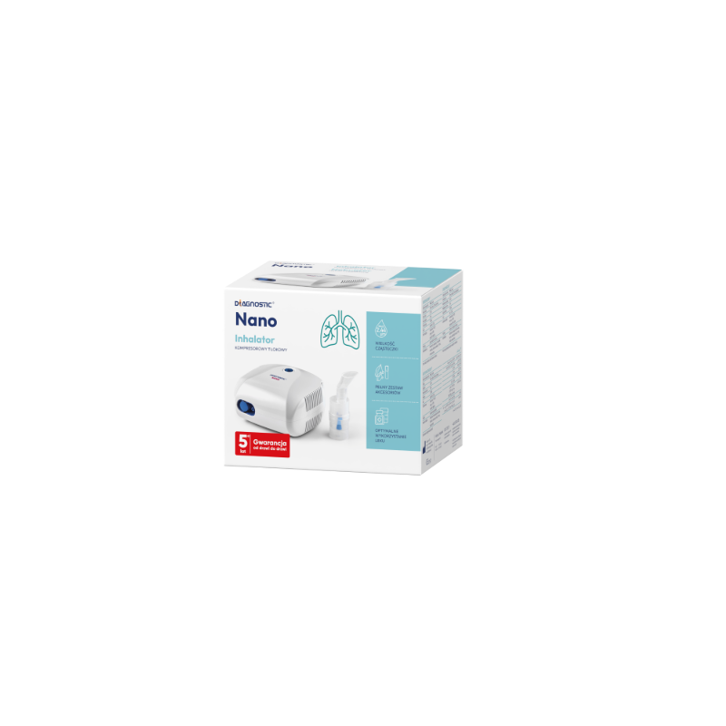 Inhalator Diagnostic NANO to wyrób medyczny przeznaczony do inhalacji. Do stosowania w warunkach domowych w leczeniu pacjentów w każdym wieku cierpiących na choroby układu oddechowego, przyczynia się również do łagodzenia objawów choroby. Umożliwia natychmiastowe i bezpośrednie dotarcie zastosowanego preparatu w formie wziewnej do oskrzeli i płuc. Wyrób medyczny, przed zastosowaniem należy zapoznać się z instrukcją używania oraz postępować według zaleceń lekarza