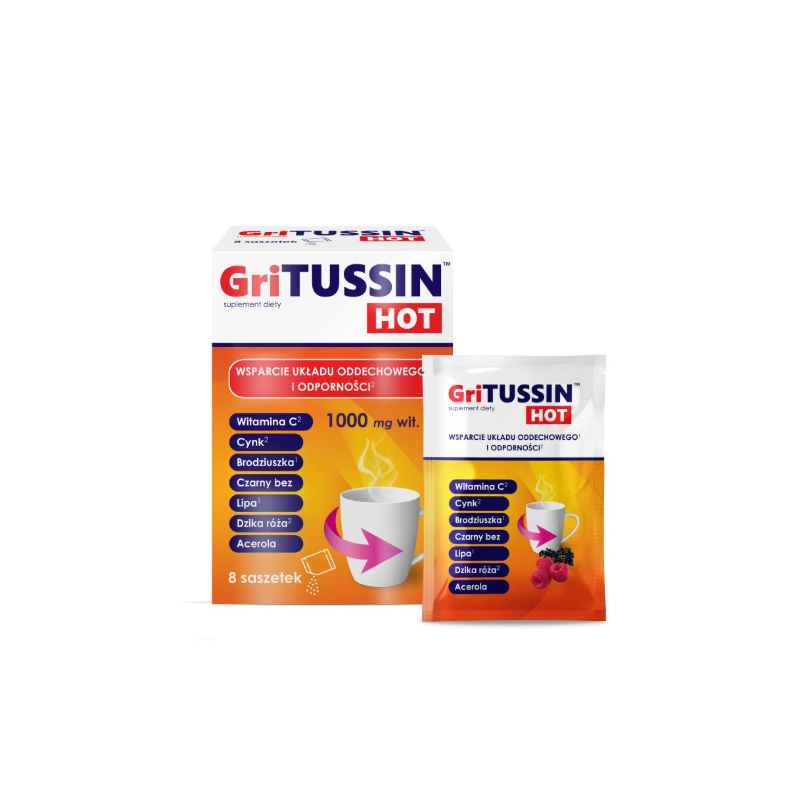 GRITUSSIN HOT to suplement diety opracowany z myślą o wspieraniu układu oddechowego i odpornościowego w trudnych okresach jesienno-zimowych.