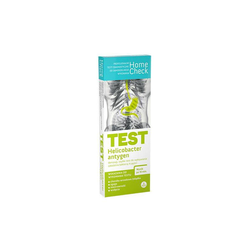 TEST HELICOBACTER ANTYGEN to szybki test domowy, który umożliwia wykrycie zakażenia bakterią Helicobacter pylori poprzez identyfikację jej antygenów w próbce kału. Jego działanie opiera się na reakcji antygen–przeciwciało. Specjalne przeciwciała monoklonalne anty-H. pylori, umieszczone na membranie testowej podczas produkcji, wiążą się z antygenami obecnymi w próbce. Po upływie około 10 minut wynik widoczny jest w formie kolorowych linii na powierzchni kasety testowej.