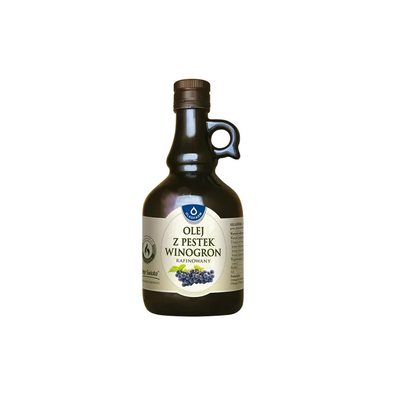 Olej z pestek winogron charakteryzuje się wysoką zawartością tłuszczów nienasyconych, w tym tłuszczów wielonienasyconych (NNKT – Niezbędne Nienasycone Kwasy Tłuszczowe). Zastępowanie w diecie tłuszczów nasyconych tłuszczami nienasyconymi pomaga w utrzymaniu prawidłowego poziomu cholesterolu we krwi (jedno- i wielonienasycone kwasy tłuszczowe są tłuszczami nienasyconymi). Utrzymanie prawidłowego stanu zdrowia wymaga zrównoważonego odżywiania i prowadzenia zdrowego trybu życia.