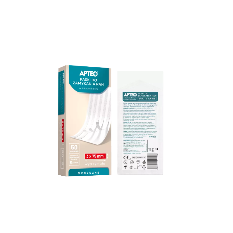 Apteo Paski do zamykania ran w kolorze białym 3 x 75 mm
