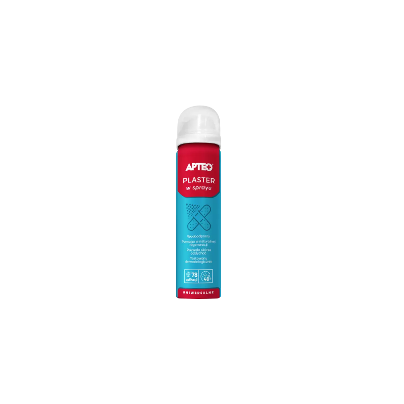 Plaster w sprayu, wodoodporny. Pomaga w naturalnej regeneracji. Pozwala skórze oddychać. Testowany dermatologicznie. Plaster w sprayu to plaster w postaci aerozolu, którego formuła została przebadana pod kątem ochrony powierzchownych ran przed czynnikami zewnętrznymi (woda, brud, bakterie itp.). Ta innowacyjna formuła jest szczególnie odpowiednia do ochrony dużych powierzchni ciała lub miejsc, gdzie założenie zwykłego plastra jest utrudnione (łokcie, kolana, stawy, dłonie, stopy itp.). Plaster w sprayu tworzy cienką, przezroczystą warstwę, sprawiającą, że leczony obszar jest odporny na wodę, oraz pomagającą w naturalnej regeneracji.