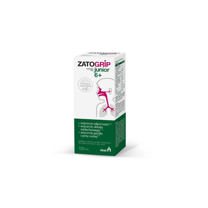 Suplement diety Zatogrip Junior 6+ polecany jest w okresach grypy i przeziębienia, którym towarzyszą gorączka, katar oraz infekcje ucha środkowego. Zawarte w nim naturalne składniki, m.in. werbena, czarny bez i porost islandzki, pomagają utrzymać odpowiednie nawilżenie gardła oraz wspierają prawidłowe funkcjonowanie dróg oddechowych.