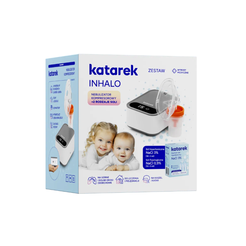 Katarek Inhalo Zestaw Nebulizator Kompresorowy + sól hipertoniczna 3% + sól fizjologiczna 0,9%