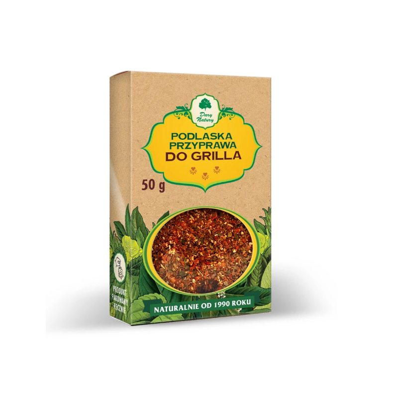 warzywa suszone (marchew, pasternak, cebula, pietruszka nać), papryka ostra, majeranek, pieprz czarny, cząber, rozmaryn, ziele angielskie, jałowiec, kolendra, mięta, szałwia