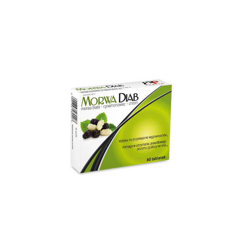 Suplement diety Morwa diab to złożony preparat zawierający składniki wpływające na poziom cukru w organizmie. Preparat zawiera odpowiednio dobrane wyciągi roślinne wpływające na ilość cukrów przyjmowanych wraz z pożywieniem, także podczas odchudzania. Ekstrakt z liści morwy białej przyczynia się do utrzymania zrównoważonego metabolizmu węglowodanów w organizmie człowieka. Dzięki zawartości substancji wpływających na działanie enzymów biorących udział w trawieniu węglowodanów wyciąg z morwy białej ogranicza wchłanianie węglowodanów po posiłku. Ekstrakt z kory cynamonowca przyczynia się do utrzymania prawidłowego poziomu cukru we krwi. Chrom pomaga w utrzymaniu prawidłowego poziomu glukozy we krwi.