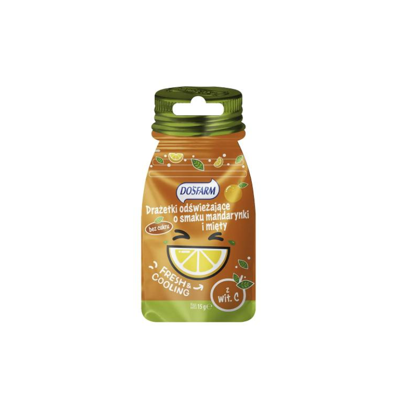 Dosfarm, Drażetki odświeżające o smaku mięty i mandarynki, bez cukru