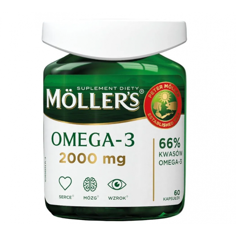 Mollers Omega-3 2000 mg - to suplement diety w postaci kapsułek, który zawiera kwasy tłuszczowe omega-3. Produkt przeznaczony dla osób dorosłych i dzieci od 11. roku życia.
