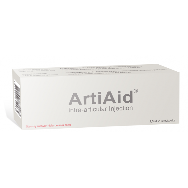 ArtiAid jest sterylnym, niepirogennym, maziowym środkiem wspomagającym biokomplementację, przygotowanym z niezapalnego, lepkiego, wodnego roztworu o określonej masie cząsteczkowej (600,000-1.2000.000 Daltonów)wysoko oczyszczonego kwasu hialuronowego.