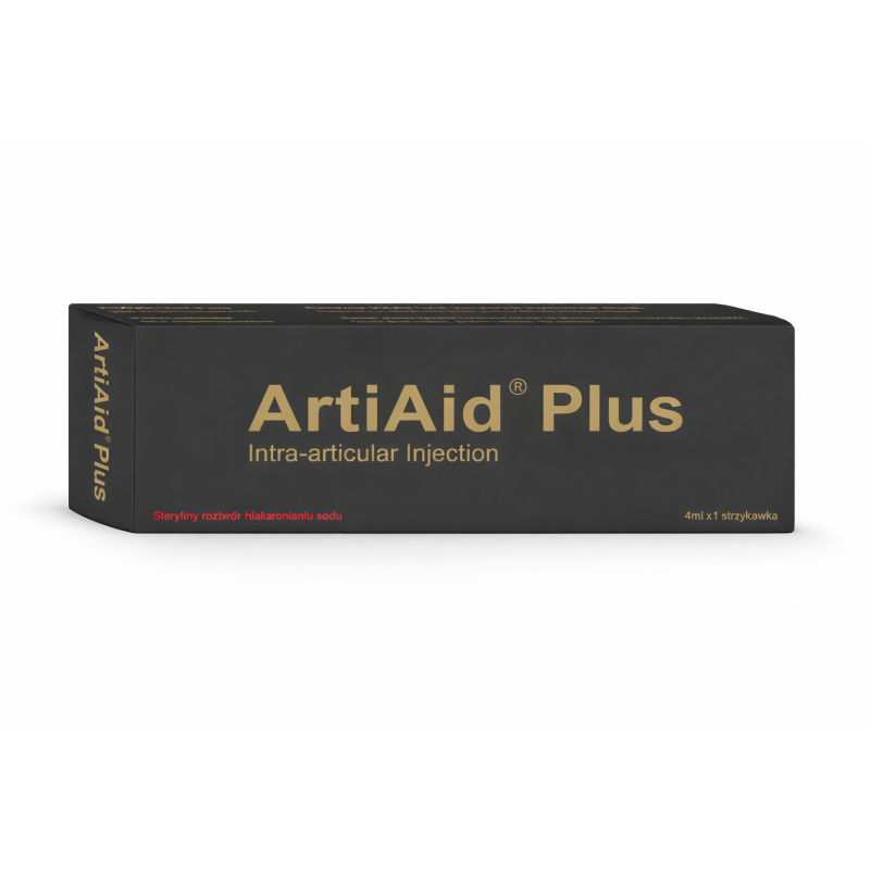 ArtiAid Plus to sterylny, niepirogenny maziowy zestaw do wiskosuplementacji sporządzony z niepalnego, lepkiego, wodnego roztworu z frakcją zdefiniowanej masy cząsteczkowej (powyżej 1,500 KDa) wysoko oczyszczonego kwasu hialuronowego.