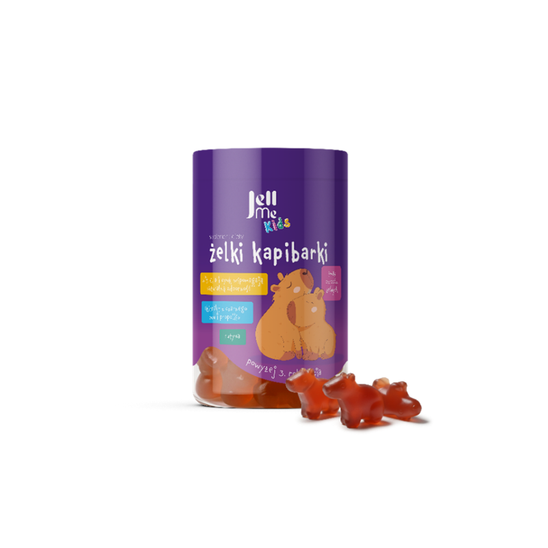 JellMe Kids żelki kapibarki to suplement diety w postaci żelek zawierających w swoim składzie ekstrakt czarnego bzu, witaminę C i D, ekstrakt z propolisu, cynk i rutynę.